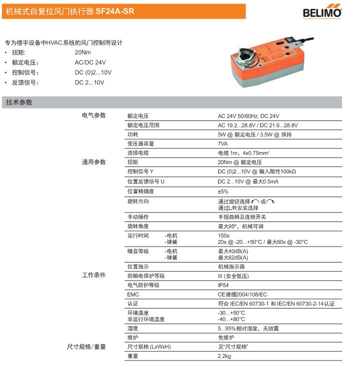 • SF24A機械式自復位風門執行器