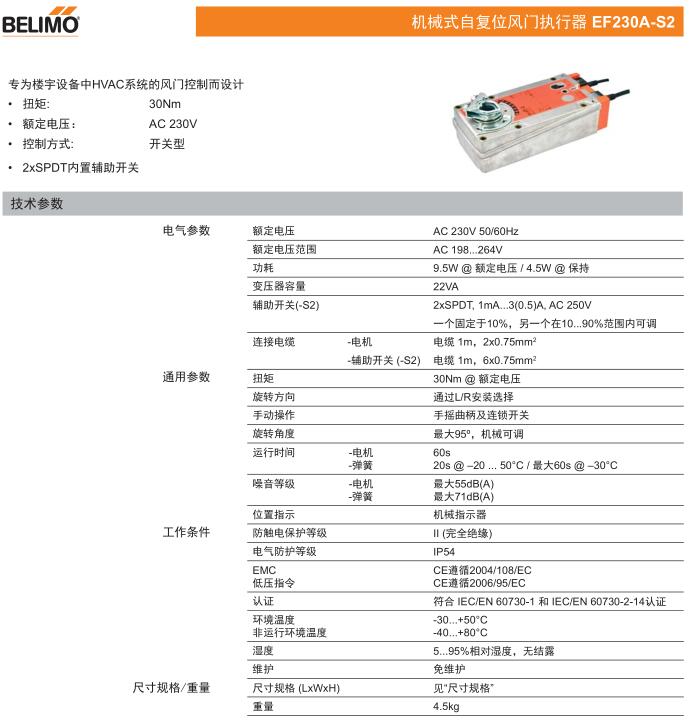 • EF230A機械式自復位風門執行器