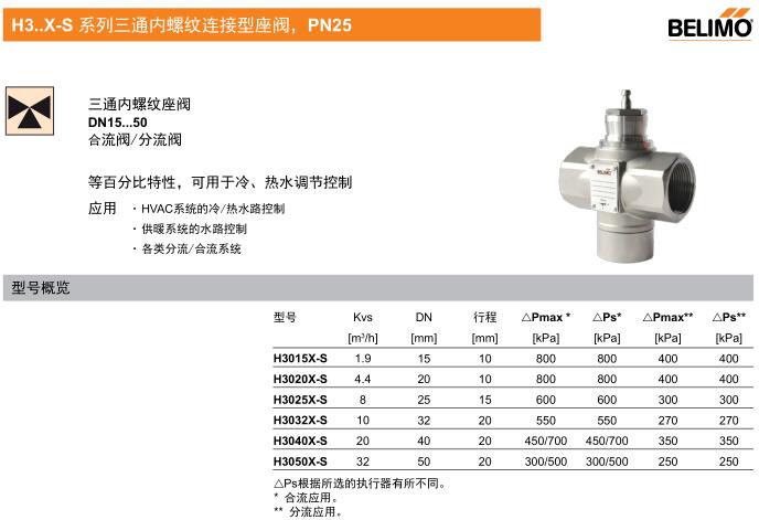 • H3..X-S 系列三通內螺紋連接型座閥